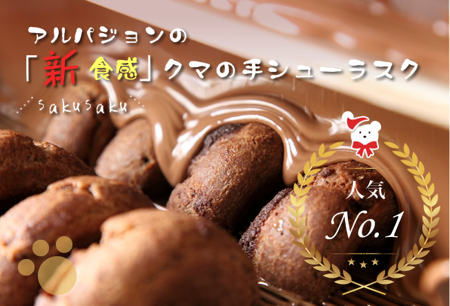 シューラスクの特徴は何といっても「くまの手」のようなかたち。「シュー皮は、ヨコに切ってクリームをつめるもの」と言う常識を覆し、大ヒット商品となりました。